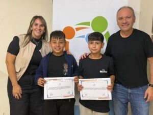 El intendente Elvio Omar Cotterli, junto a la secretaria de Cultura Rocío Aressi, recibieron y agasajaron a los jóvenes futbolistas Elian Mocer y Lucio Rolón,